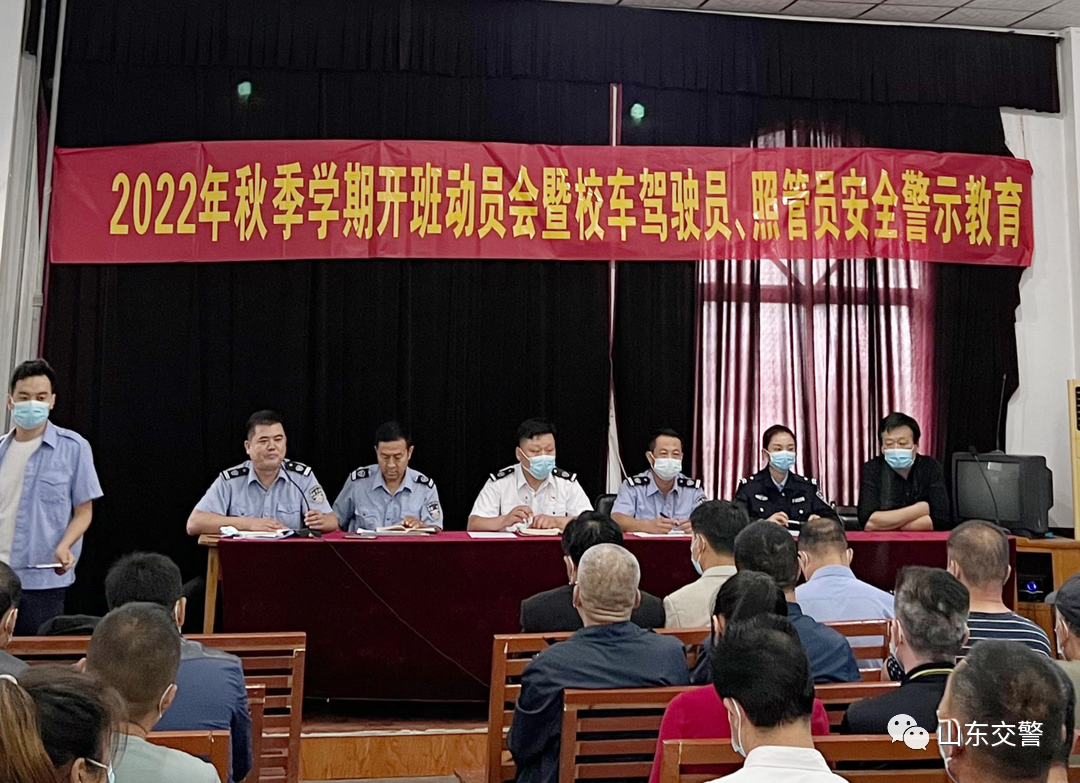8月26日,聊城莘县交警大队联合教育和体育局组织召开校车驾驶人“开工第一课”安全培训会。