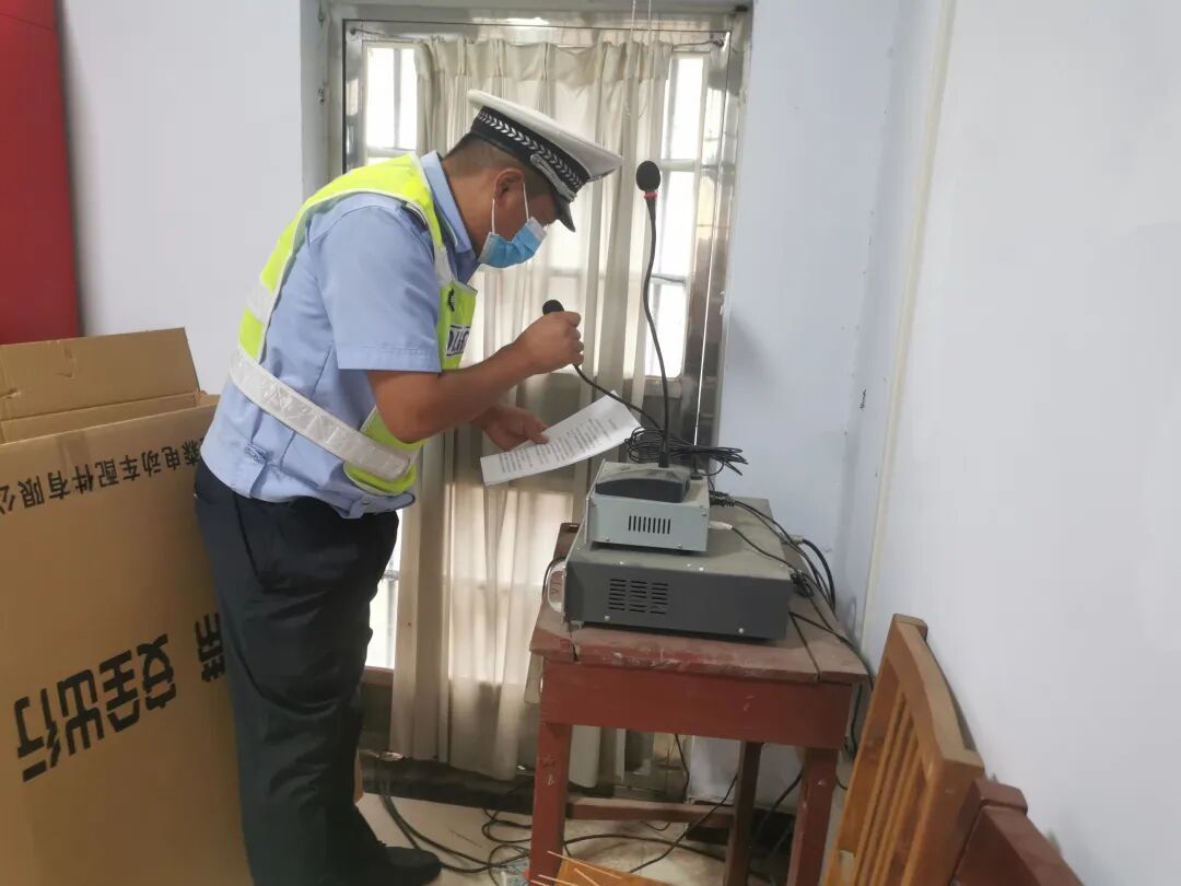 活动中,宣传人员围绕农村群众出行特点,化身普法“主播”,采取“送法上门”的形式,通过村委“大喇叭”,向广大村民普及“一盔一带”“一老一小”出行常识、面包车和摩托车安全行车知识、酒驾醉驾危害性、无牌无证车辆上路行驶安全隐患等交通安全知识。